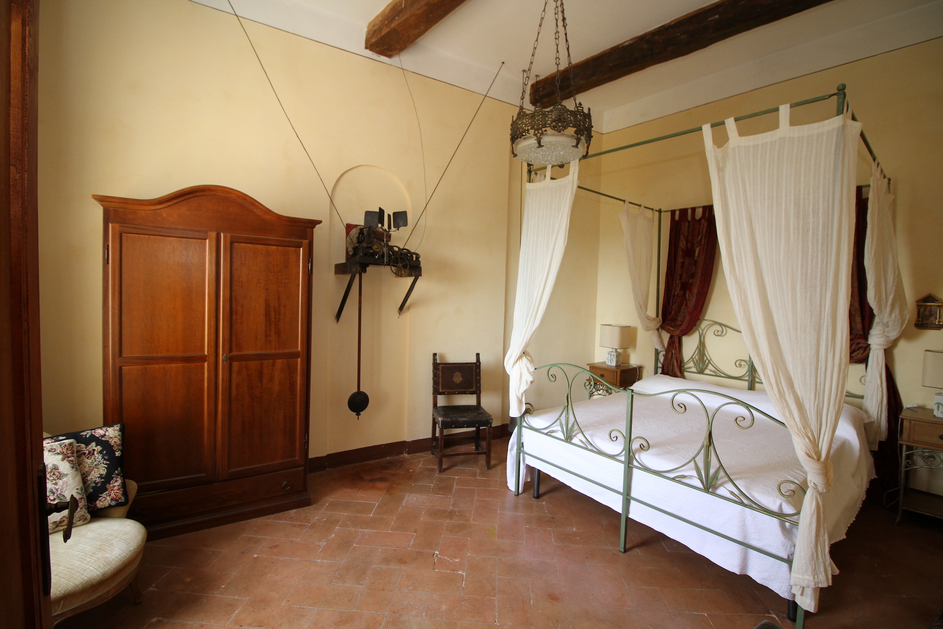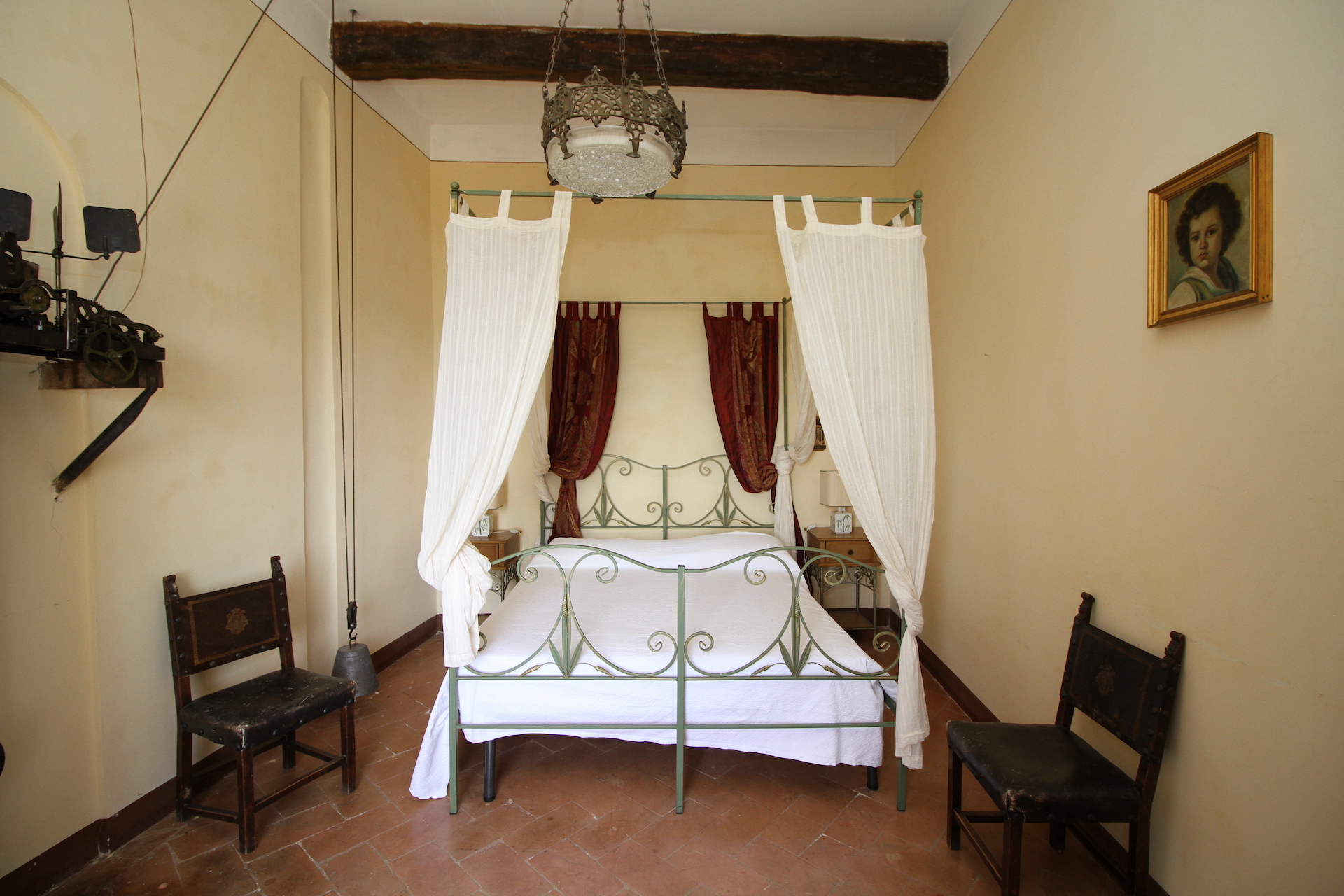 La camera 0, che si trova al piano primo, è detta “dell’orologio” perché vi si trova proprio un antico orologio che occupa quasi per intero la parete di fronte all’ingresso. Essa è inoltre dotata di un letto a baldacchino simile ad un alcova. Dalla finestra si può ammirare lo spettacolare andamento curvilineo della facciata del castello costruito sulle antiche mura. Essa è dotata da un bagno-doccia con finestra che dà sull’antico borgo del paese.